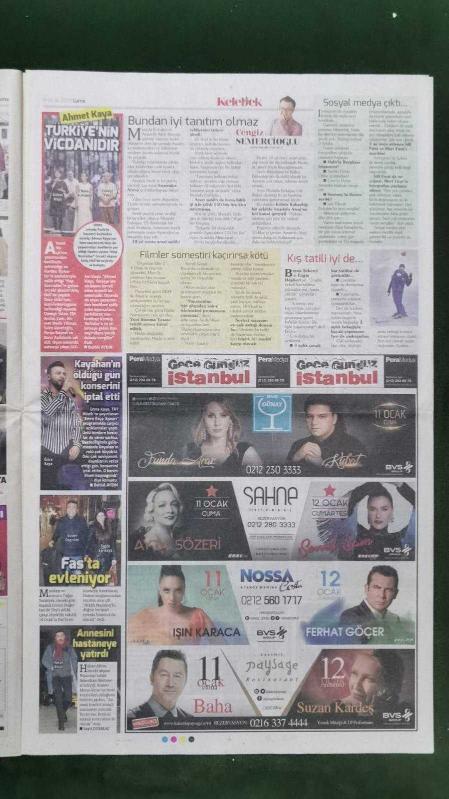 Kitap 2019 yılında yayınlanmıştır. 6 sayfadır. Hürriyet Kelebek Gazete 11 Ocak 2019 Şükran Ovalı,Oya Okar,Ezgi Mola,Aynur Aydın,Hande Yener,Cahit Gök,Şencan Güleryüz,Begüm Birgören,Tolga Güleç,Güzide Duran,Ferman Akgül,Erdem Yener,Edis,Simge Sağın,Buray,Şahin Kendirci,Mehmet Erdem,Emre Kaya,Şebnem Çapa,Yelda Güral,Raşit Bağzıbağlı,Emre Yücelen,Lucy Hale,Deniz Sipahi,Baran Bayraktar,Demet Şener,Hakan Altun,Erol Evgin,Otel - Gazino İlanları adlı eser Türkçe dilindedir.