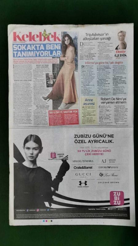 Kitap 2016 yılında yayınlanmıştır. 8 sayfadır. Hürriyet Kelebek Gazete 13 Ekim 2016 Ceylan Çapa,Tülin Şahin,Zeynep Demirel,Bahar Korçan,Yonca Evcimik,Kadir Çöpdemir,Özge Sezince,Tom Hanks,Onur Seyit Turan,Gizem Kayalı,Selena Gomez,Arzu Kaprol,Uğurkan Erez,Özge Ulusoy,Şeyma Subaşı,Seçkin Piriler,Meltem Cumbul,Müge Boz,Kemal Doğulu,Murat Aygen,Timuçin Esen,Şevval Sam,Arif Keskiner,Menderes Samancılar,Rasim Ozan Kütahyalı,Aras Aydın,Melis Babadağ,Ahmet Çakar,Sinan Engin,Yılmaz Kunt,Yağmur Aydan,Begüm Kütük,Burcu Karabacak adlı eser Türkçe dilindedir.