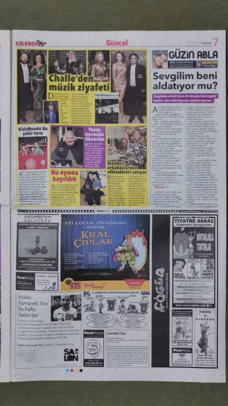 Kitap 2015 yılında yayınlanmıştır. 8 sayfadır. Hürriyet Kelebek Gazete 2 Şubat 2015 İbrahim Tatlıses,Nesrin Cavadzade,Nina Ağbal,İzzet Çapa,Reid Heidenry,Emine Şans Umar,Sinan Özer,Sezen Aksu,Yeliz Yelişmen,İlham Gencer,Ajda Pekkan,Gökhan Keser,Harry Styles,Bill Montag,Heildi Montag,Kelly Osbourne,Sharon Osbourne,Candice Swanepoel,İrina Shayk,Salma Hayek,Aslı Berker,Erdal Tosun,Cem - Hülya Kalyoncu,Serap Tunç,Nasuh Mahruki,Ayşe Tolga,Yıldız Tilbe,Sibel Can,Ferhat Göçer,Cenk Eren,Dilara Gönder,İlyas Yalçıntaş,Tuğba Özay,Behzat Gerçeker,Demet Akbağ adlı eser Türkçe dilindedir.
