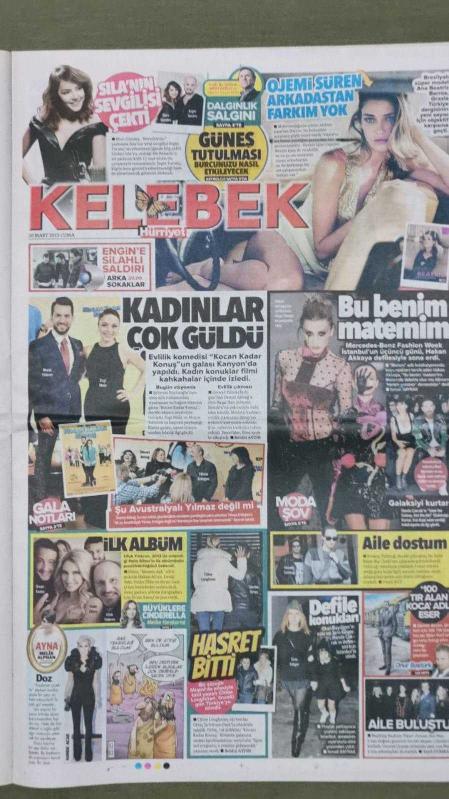 Kitap 2015 yılında yayınlanmıştır. 14 sayfadır. Hürriyet Kelebek Gazete 20 Mart 2015 Murat Yıldırım,Ezgi Mola,Demet Akbağ,Yılmaz Erdoğan,Ebru Gündeş,Ana Beatriz Barros,Hakan Akkaya,Chloe Loughnan,Ercan Saatçi,Serdar Ortaç,Kıvanç Tatlıtuğ,Şebnem Bozoklu,Burak Sağyaşar,Asena Tuğal,Şahin Irmak,Özlem Kaya,Giray Sepin,Hande Çokrak,Nazlı Soylu,Linet,Berksan,Ayşe Arman,Ceyda Düvenci,Göksel,Son Mektup Film Afişi,Ebru Gündeş,Ferhat Göçer,Çoşkun Sabah,Hakan Altun,Hotel - Gazino Reklamı,Jokerbaby - Penti - Vestel Reklamı adlı eser Türkçe dilindedir.