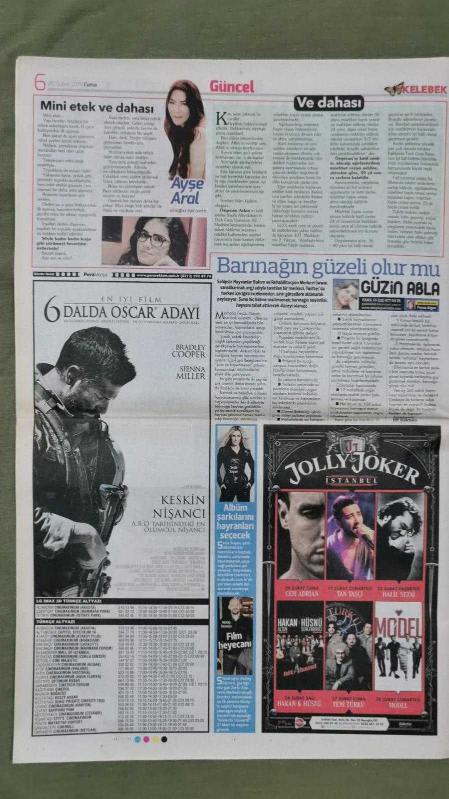 Kitap 2015 yılında yayınlanmıştır. 12 sayfadır. Hürriyet Kelebek Gazete 20 Şubat 2015 Nefise Karatay,Gamze Özçelik,Dolunay Obruk,Jeremy Scott,Merve Boluğur,Salih Yüzbaşı,Gülçin Ergül,İpek Tuzcuoğlu,İsmail Yk,Monica Bellucci,Daniel Craig,Mehmet Ali Erbil,Ece Erken,Erkan Özerman,Keanu Reeves,Katie Holmes,Elsa Hosk,Amber Rose,Sibel Can,Ayşe Hatun Önal,Suadiye,İlker Aksum,Şeyma Şener,Pekin Kaya,Tülin Şahin,Corinne Hermes,Kıvanç Tatlıtuğ - İlker Ayrık Akbank Reklamı,Ali Kundilli Film Afişi,Hotel - Gazino Reklamları adlı eser Türkçe dilindedir.