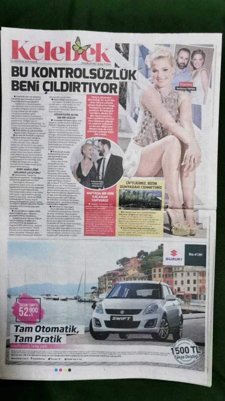 Kitap 2016 yılında yayınlanmıştır. 10 sayfadır. Hürriyet Kelebek Gazete 21 Ağustos 2016 Begüm Birgören,Alişan,Demet Akalın,Ayla Çelik,Mustafa Üstündağ,Ömür Gedik,Katherine Heigl,Barbaros Tapan,Dilan Çiçek Deniz,Ata Demirer,Bora Akkaş,Özcan Deniz,Suzan Kardeş,Deniz Akkaya,Aslışah Alkoçlar,Tülin Şahin,Fatoş Sarıgül,Tülay Demir Oktay,Bergüzar Korel,Hadise,Burak Özçivit,Mabel Matiz,İrem Derici,Tuğba Yurt,Vildan Atasever,İbrahim Talıses,Birce Akalay,Sarp Levendoğlu,Aleyna Tilki,Emrah Karaduman adlı eser Türkçe dilindedir.
