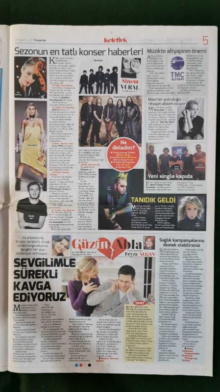 Kitap 2017 yılında yayınlanmıştır. 8 sayfadır. Hürriyet Kelebek Gazete 24 Ağustos 2017 İstanbul'a Yıldız Yağacak,Selda Bağcan,İlhan İrem,Michael Kiwanuka,Chloe Loughnan,Lucy Loughnan,Tuğba Coşkun,Sit-com'a Dönüş,Aslıhan Güner,Kenan Ece,Sinem Vural,Demet Akalın,Mahmut Gökgöz,Ayşen Gruda,İrem Derici,Bektaş Erdoğan,Ferda Anıl Yarkın,Eda Özülkü,Yeşim Salkım,Metin Özülkü,Ali Ağaoğlu,Sena Ağaoğlu,Koray Kırcal,Ferhan Bıçakçılar,Esra Harmanda,Şebnem Dinçgör,Ali Sayar,Melih Özkan,İsmail Balaban,Imane Elbani,Murat Yıldırım,Bensu Soral,Hakan Baş,İlker Aksum,Şeyma Şener,Erol Evgin,Hilal Çınar,Sercan Kazancı,Benan Bal, Oğuzhan Koç,Murat Dalkılıç,Şilan Makal,Bedran Güzel,Gökmen Şeynova,Deniz Akkaya,Prof.Dr.Osman Müftüoğlu Yaşam Reçeteleri,Hande Yener,Burak Sevinç,Banu Zorlu,Hüseyin Ulusan,Merve Büyüktaş,Yıldıray Yanlı,Zoe Keating,Anne-Marie,Dream Theatre,Nicoles Jaar,Emre Aydın,Tuna Velibaşoğlu,Can Temiz,Ezgi Yelen,Mustafa Topaloğlu,Pascal Nouma,Friends İle Gurur Duyuyorum,Matt LeBlanc,Sahrap Soysal Yemek Tarifi,Tv Rehberi adlı eser Türkçe dilindedir.