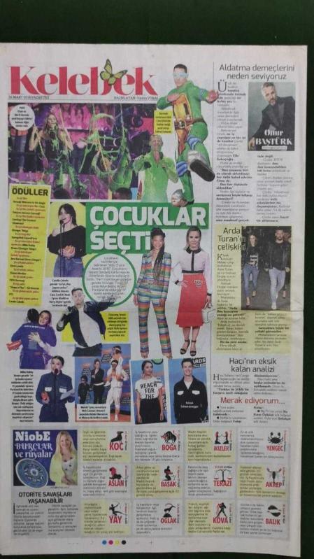 Kitap 2018 yılında yayınlanmıştır. 8 sayfadır. Hürriyet Kelebek Gazete 26 Mart 2018 Mahir İpek,Kenan İmirzalıoğlu,Eliz Sakuçoğlu,Yalın,Ömür Gedik,Cengiz Semercioğlu,Onur Baştürk,Kubilay Aka,Julio Baptista,Silvia Calvo,Suelem Leal,Andre Santos,Şahin Özer,Hakan Altın,Gökçe Bekaroğlu,Şevval Sam,Kristen Bell,Kat Graham,Arda Turan,Aslıhan Doğan,John Cena,Heidi Klum,Tuğçe Aral,Ayla Çelik,Yıldız Asyalı,Büşra Develi,Mehmet Günsür,Berrak Tüzünataç,Ozan Güven,Serenay Sarıkaya,Alişan,Buse Varol,Nejat İşler,Yıldız Tilbe,Hande Soral,Cem Yılmaz,Yağmur Tanrısevsin,Bülent Eczacıbaşı,Revna Demirören,Fatma Betül Sayan Kaya,Ayşe Doğan,Arzu Sabancı adlı eser Türkçe dilindedir.