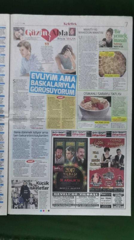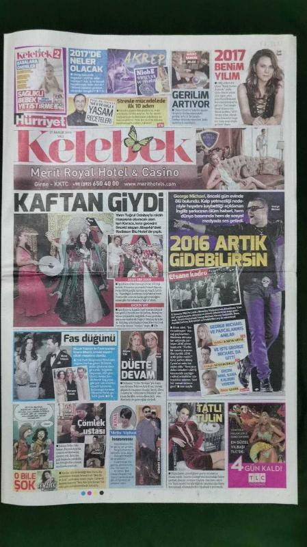 Kitap 2016 yılında yayınlanmıştır. 8 sayfadır. Hürriyet Kelebek Gazete 27 Aralık 2016 Işın Karaca,Çisli Egeli,George Michael,Murat Yıldırım,Aziz Kiraz,İmane Elbani,Murat Yıldırım,Şahan Gökbakar,Selin Gökbakar,Gökhan Türkmen,Tülin Şahin,Reyhan Karaca,Burcu Biricik,Birkan Sokullu,Malkoç Süalp,Emirhan Kartal,Meltem Miraloğlu,Seren Serengil,Arda Turan,Kadir Topbaş,Tolgahan Sayışman,Meryem Uzerli,Demet Akalın,Okan Kurt,Celil Nalçakan,Hande Subaşı,Alişan,Yıldız Asyalı,Ece Mumay adlı eser Türkçe dilindedir.