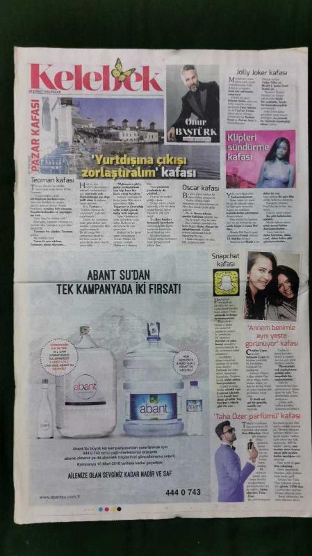 Kitap 2016 yılında yayınlanmıştır. 12 sayfadır. Hürriyet Kelebek Gazete 28 Şubat 2016 Ceylan Çapa,Şebnem Çapa,Rihanna,Taha Özer,Deniz Akkaya,Ebru Şallı,Mithat Can Özer,Asuman Krause,Sadettin Saran,Gripin,Erkan Can,Ömür Gedik,Hülya Koçyiğit,Sibel Can,Demet Akbağ,Keremcem,Wilma Elles,Cansu Tosun,Sarp Levendoğlu,Birce Akalay,Helin Avşar,Emre Altuğ,Işıl Yücesoy,Engin Akyürek,focus İstanbul Reklamı adlı eser Türkçe dilindedir.