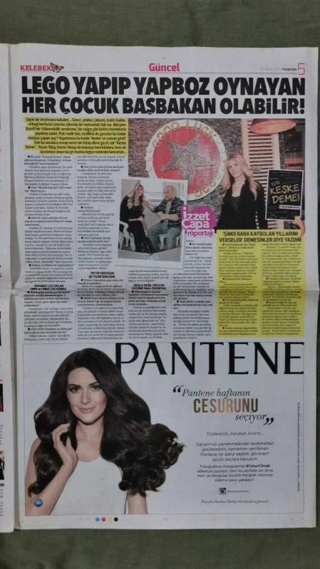 Kitap 2015 yılında yayınlanmıştır. 6 sayfadır. Hürriyet Kelebek Gazete 30 Mart 2015 Pelin Öztekin,İlker Ayrık,Anıl Altan,Pelin Akil,Derya Şensoy,Bergüzar Korel,Berksan,Angelina Jolie,Ebru Gündeş,Kenan İmirzalıoğlu,Meltem Cumbul,Kendi,Berrin Zorlu,Ozan Güven,Okan Karacan,Mehmet Erdem,Funda Arar,Cem Arısoy,Zahide Yetiş,Hande Subaşı,Nursel Ergin,Kaley Cuoco,Angelina Jolie,Pantene Bergüzar Korel Reklamı adlı eser Türkçe dilindedir.