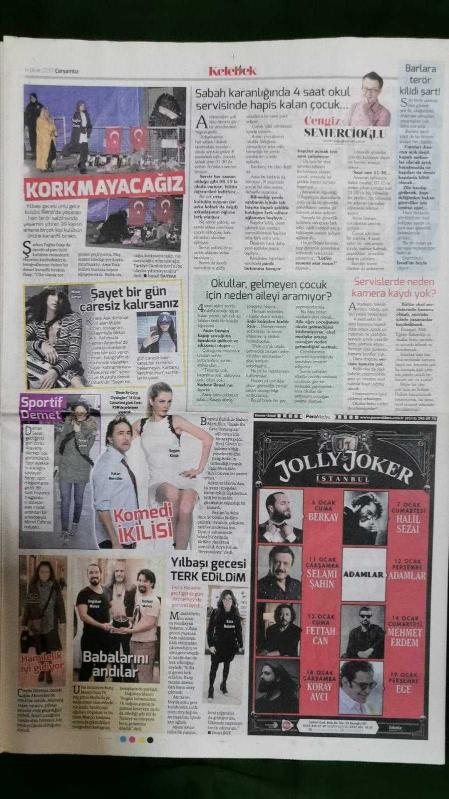 Kitap 2017 yılında yayınlanmıştır. 8 sayfadır. Hürriyet Kelebek Gazete 4 Ocak 2017 Ebru Şallı,Şebnem Ferah,Safiye Soyman,Berksan,Tuğba Özerk,Nihan Buruk,Okan Buruk,Ünal Aysal,Ali Sunal,Gül Sunal,Şebnem Bozoklu,Kadir Alkan,Murat Hazinedar,Hayri İnönü,Ahmet Misbah Demircan,Doğu Demirkol,Tuvana Türkay,Günay Musayeva,Saffet Emre Tonguç,Kenan Uçkan,Begüm Kütük,Hakan Meriçliler,Tuğba Özay,Demet Şener,Esra Balamir,Rüveyda Öksüz,Ceyda Düvenci,Doğukan Manço,Batıkan Manço adlı eser Türkçe dilindedir.