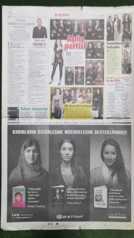 Kitap 2019 yılında yayınlanmıştır. 6 sayfadır. Hürriyet Kelebek Gazete 8 Mart 2019 Kemal Kılıçdaroğlu,Yılmaz Morgül,Gökçe Bahadır,Fikret Kuşkan,Simay Barlas,Ahmet Kavrak,Sefa Öztürk,Gözde Cığacı,Bülent Çolak,Saba Tümer,Eda Tümer,Simge Sağın,Tolga Yüce,Ömür Gedik,Mine Tugay,Tanju Babacan,Hande Ünal,Ayfer Toprak,Furkan Temir,Meryem Uzerli,Halil Sezai,Sinem Yıldırım,Kaan Urgancıoğlu,Yasmin Erbil,Buse Terim,Murat Dalkılıç adlı eser Türkçe dilindedir.