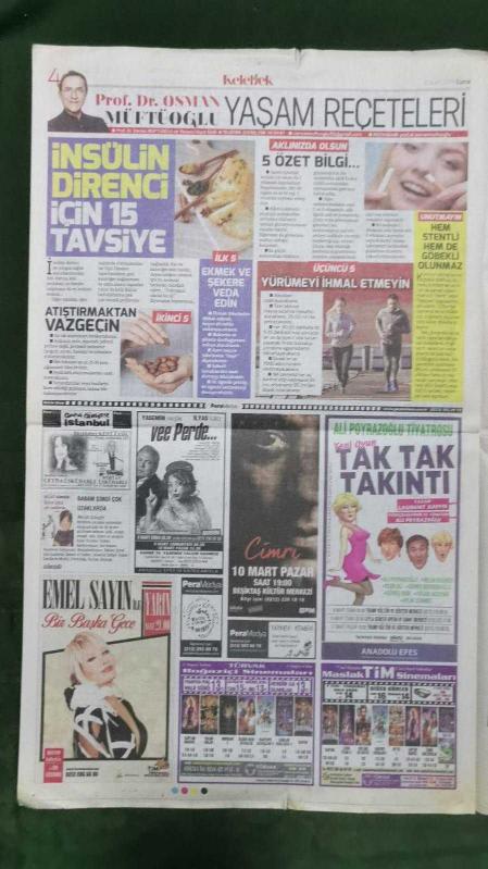 Boyutu: Boyu:55 Eni:35 Gazetede yıpranma,sararma,kupon kesiği ve yırtılma zamana bağlı olarak görülebilir