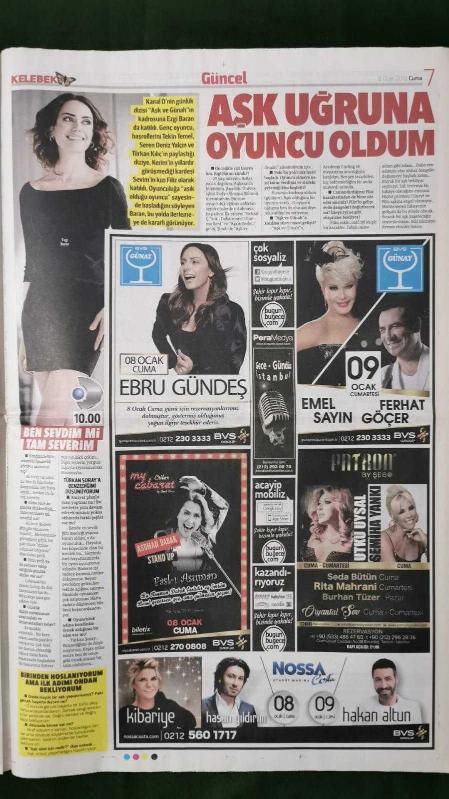 Kitap 2016 yılında yayınlanmıştır. 10 sayfadır. Hürriyet Kelebek Gazete 8 Ocak 2016 Ezgi Baran,Wesley Sneijder,Yolanthe Cabau,Çağla Şikel,Shay Mitchell,Sinan Akçıl,Selma Ergeç,Nur Fettahoğlu,Şahan Gökbakar,Demet Akalın,Sermiyan Midyat,Füsun Demirel,Zuhal Olcay,Cahit Berkay,Murat Yıldırım,Meryem Uzerli,Aylin Çoşkun,Hande Yener,Sevim Emre,Vanessa Hudgens,Claire Danes,Vin Diesel,Dakota Johnson,Ferman Toprak,Muazzez Ersoy,Esra Sönmezer,Mehmet Ali Erbil,Caner Erkin,Burak Yılmaz,Sinan Albayrak,Okan Kurt,Demet Akalın,Zuhal Olcay,Ebru Gündeş,Kibariye,Hakan Altun,Erdem Kınay,Selen Görgüzel,Tuğba Özerk,Otel - Gazino İlanları,Özdilek Reklamı adlı eser Türkçe dilindedir.