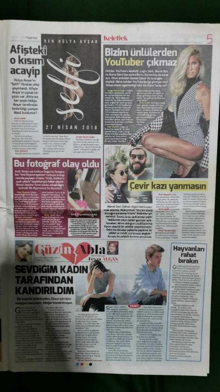 Kitap 2018 yılında yayınlanmıştır. 8 sayfadır. Hürriyet Kelebek Gazete 9 Nisan 2018 Seyyal Taner,Ömür Gedik,Onur Baştürk,Cengiz Semercioğlu,Alexandra Sabuncu,Dilan Gerede Erkaya,Selçuk Ural,Kenan İmirzalıoğlu,Şilan Makal,Emre Yetkin,Burcu Biricik,Demet Şener,Yeşim Salkım,Büşra Develi,Burak Deniz,Cardi B,Beste Yoltay,Linet,Murat Eken,Bahadır Tatlıöz,Sinan Akyüz,Ferhat Göçer,İbrahim Çelikkol,Birce Akalay,Merve Sevi,Çağla Şikel,Burcu Esmersoy,Ayşe Özyılmazel,Nihat Doğan,Attila Atasoy,Hülya Uğur,Nil Burak,Ekin Mert Daymaz,Chloe Loughnan,Yıldız Tilbe,Deniz Akkaya,Jülide Kural,Kadir İnanır,Perihan Savaş,Hatice Aslan,Hale Soygazi,Perran Kutman,İzel,Okan Bayülgen,Arzu Sabancı,Ayşe Boyner,Pelin Kaya,Hazal Kaya,Cem Davran adlı eser Türkçe dilindedir.