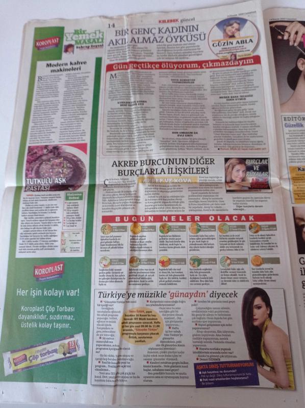 Hürriyet Kelebek Gazetesi - 14 Kasım 2009 - Cem Yılmaz Hare'lendi - Güven Kıraç Kendimi Yazıya Adayacağım- Müjde Ar Kadir İnanır Üstüme Çıktı - Popçu Bengü - Göksel - Gülben Ergen adlı eser Türkçe dilindedir.