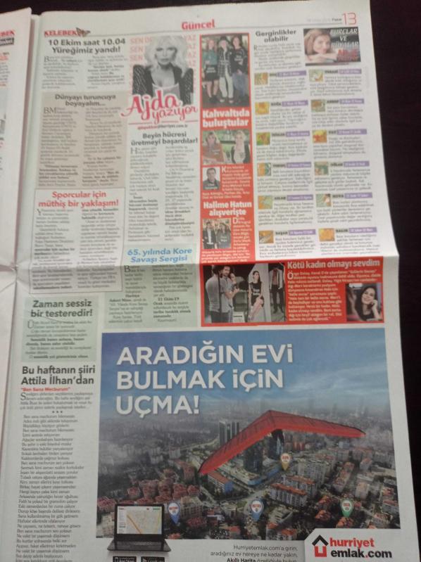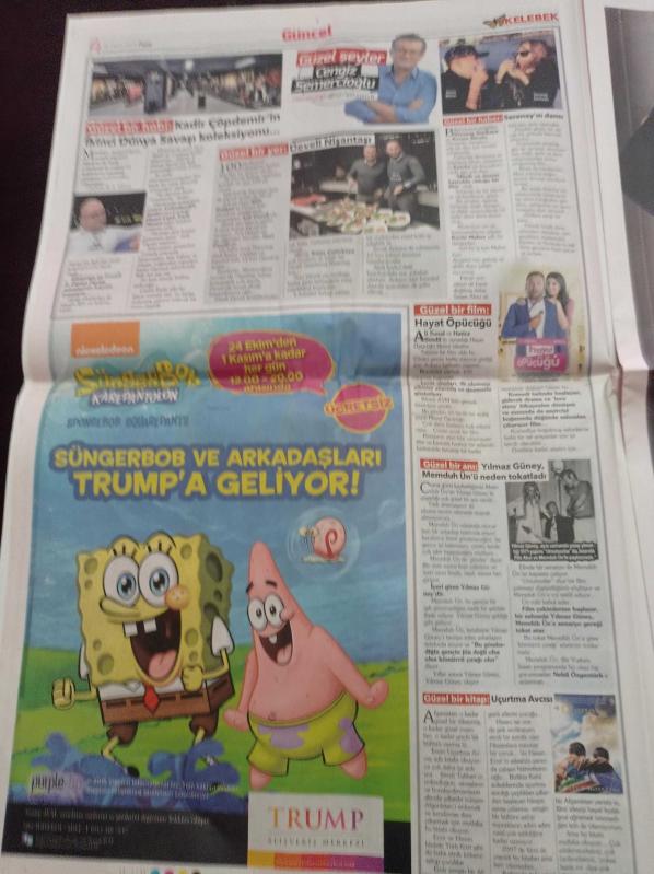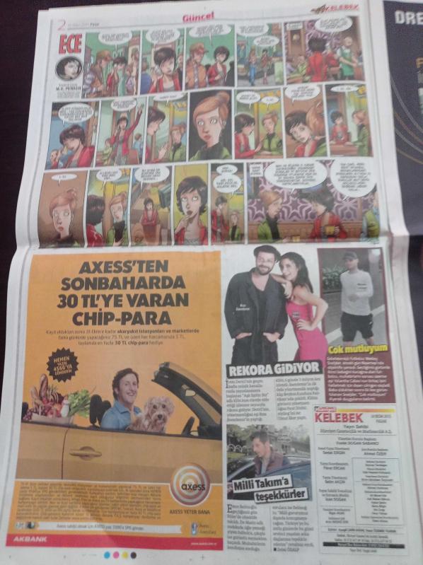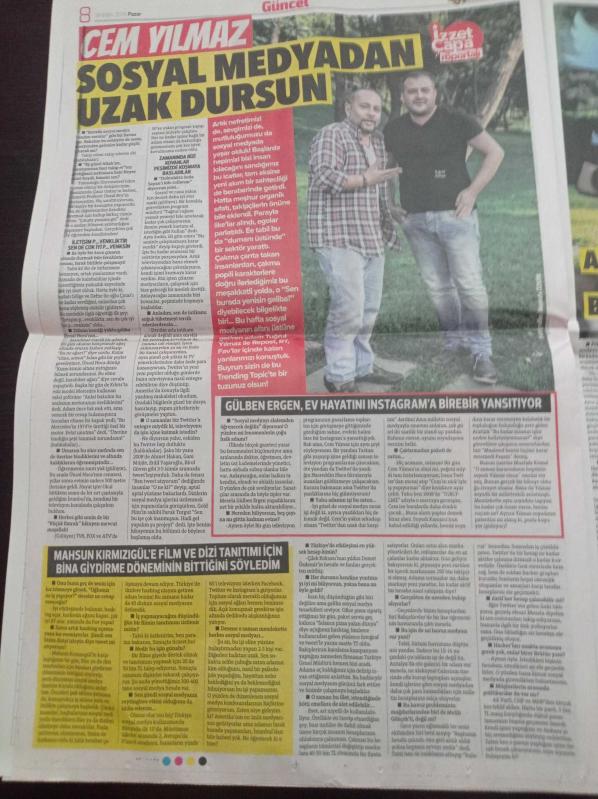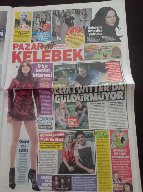Hürriyet Kelebek Gazetesi - 18 Ekim 2015 - Merve Özbey Fotoğrafı- İzzet Çapa - Şebnem Ferah Amerika Yolcusu - Cem Yılmaz Twitter'da Güldürmüyor- Yılmaz Güney Memduh Ün'ü Nerede Neden Tokatladı adlı eser Türkçe dilindedir.