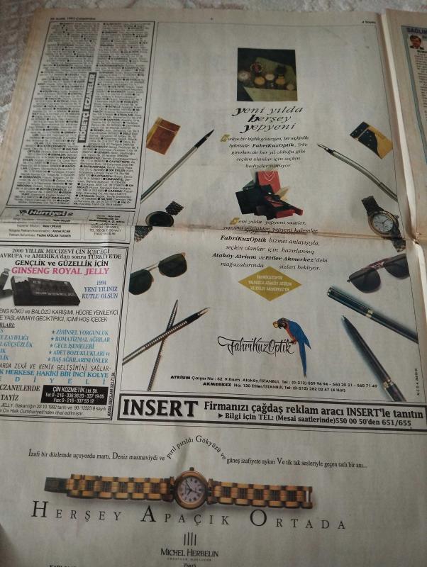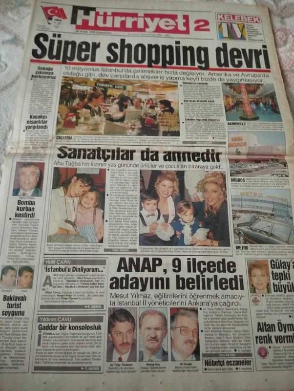 Hürriyet Kelebek Gazetesi-29 Aralık 1993-yılın acı özeti-sıcağı sıcağına-kocalara zam-eda özülkü-süper shopping devri-amerika ve avrupa'da-sanatçılar da annedir-ahu tuğba-hasan yılmaz-bomba kurban kestirdi-baklavalı turist soygunu-ali talip özdemir-recep Koç-Ali zengin-gülay atığ-altan Öymen renk vermiyor-nerede eğlenelim-metro yarı yolda-taksim Levent hattı-selahattin içli günü-modanın geleceği-yeni yılda her şey yepyeni-güzel abla-tamam mı devammı-Ergin otomotiv-önünde iki seçenek vardı-anlaşamıyoruz-rüstem batum-uzay komandosu-gazino eğlencesi-bizim kanaldan söz arıyor-noel ana yorgun düştü-yılbaşı çekimleri sürüyor adlı eser, Kitap > Süreli Yayınlar > Gazeteler > Türkiye > Genel > Günlük kategorisinde İkinci El olarak satıştadır.