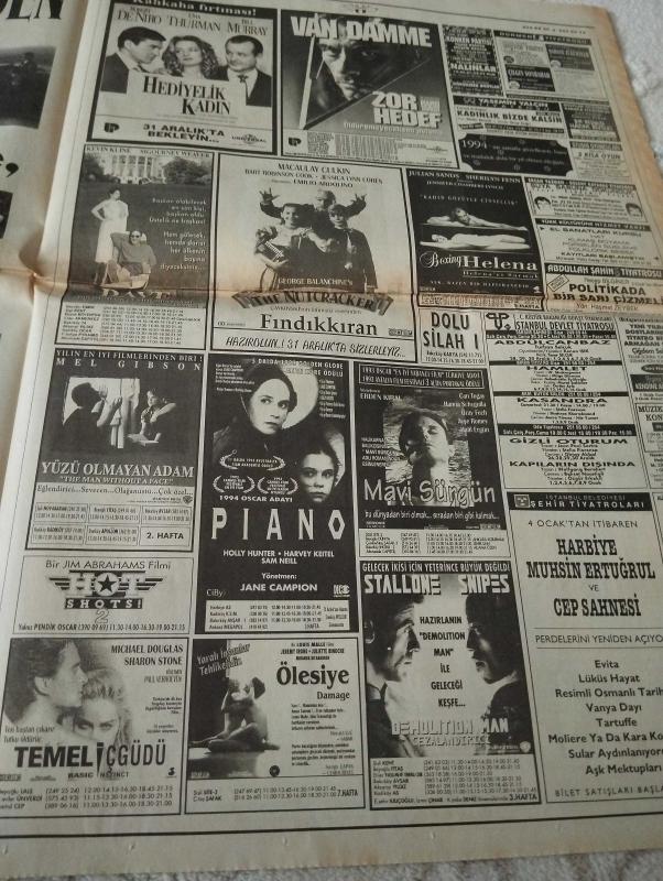 Hürriyet Kelebek Gazetesi-29 Aralık 1993-yılın acı özeti-sıcağı sıcağına-kocalara zam-eda özülkü-süper shopping devri-amerika ve avrupa'da-sanatçılar da annedir-ahu tuğba-hasan yılmaz-bomba kurban kestirdi-baklavalı turist soygunu-ali talip özdemir-recep Koç-Ali zengin-gülay atığ-altan Öymen renk vermiyor-nerede eğlenelim-metro yarı yolda-taksim Levent hattı-selahattin içli günü-modanın geleceği-yeni yılda her şey yepyeni-güzel abla-tamam mı devammı-Ergin otomotiv-önünde iki seçenek vardı-anlaşamıyoruz-rüstem batum-uzay komandosu-gazino eğlencesi-bizim kanaldan söz arıyor-noel ana yorgun düştü-yılbaşı çekimleri sürüyor, Dinç Bilgin tarafından kaleme alınmıştır. Hürriyet Kelebek Gazetesi-29 Aralık 1993-yılın acı özeti-sıcağı sıcağına-kocalara zam-eda özülkü-süper shopping devri-amerika ve avrupa'da-sanatçılar da annedir-ahu tuğba-hasan yılmaz-bomba kurban kestirdi-baklavalı turist soygunu-ali talip özdemir-recep Koç-Ali zengin-gülay atığ-altan Öymen renk vermiyor-nerede eğlenelim-metro yarı yolda-taksim Levent hattı-selahattin içli günü-modanın geleceği-yeni yılda her şey yepyeni-güzel abla-tamam mı devammı-Ergin otomotiv-önünde iki seçenek vardı-anlaşamıyoruz-rüstem batum-uzay komandosu-gazino eğlencesi-bizim kanaldan söz arıyor-noel ana yorgun düştü-yılbaşı çekimleri sürüyor adlı eser Türkçe dilindedir. Eserin içeriğinde Türkçe dilinde bölümlere de yer verilmektedir.