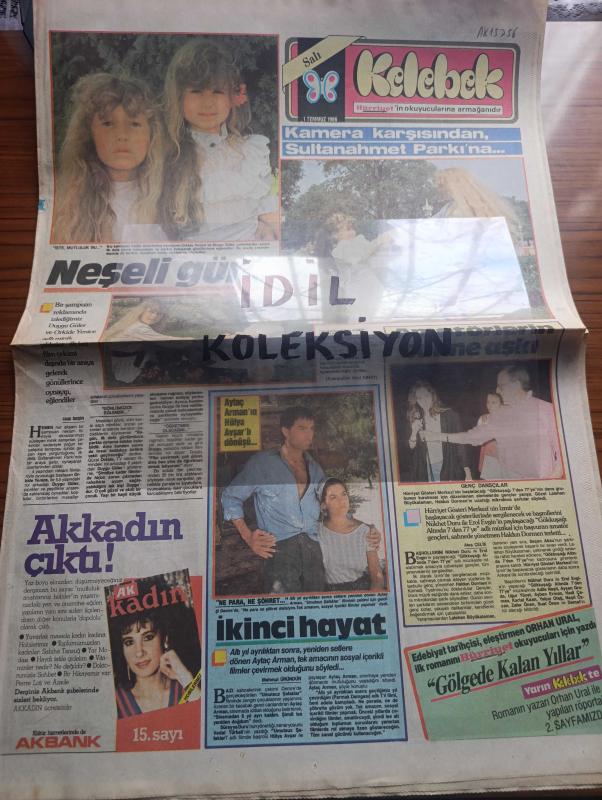 Hürriyet Kelebek Gazetesi - Turkish Newspaper - 1 Temmuz 1986 - kamera karşısından Sultanahmet parkına Fotoğrafı - ikiz kardeşler kadar birbirlerine benzeyen orkide Yenice ve Duygu Güler şampuan reklamı çekimlerinde Fotoğrafı - Aytaç Arman'ın Hülya Avşarlı dönüşü Fotoğrafı - Nükhet Duru ile Erol Evgin paylaşacağı gökkuşağı altında 7'den 77'ye adlı müzikal için başvuran amatör gençler Haldun Dormen'i terletti Fotoğrafı - yaşamımızdan renkli bir kesit sunan yazar Orhan Ural Fotoğrafı - Kırkından Sonra oynayanlar Adile Naşit Erol Günaydın Erdal Özyağcılar Ve Ayşen Gruda foto roman - aşık olunan ayakkabılar Türkiye'de - ev kadınının rehberi hazırlayan Ayser Beşiroğlu - Zeki Müren iflas etti - Mazideki kadın oynayanlar Kenan Kalav Bahar Öztan Foto Roman - Ünlü aşklar Theodora Ve Jüstinyen imparatorun uğuru sokak kızı çizen Cemal Dündar - günün adamı oynayanlar Ali Poyrazoğlu Nilgün Belgün Duygu Ankara Foto Roman - günlük dalga karikatürü eğlence sayfası - yeni yönetmenler Sinan Çetin, Sedat Simavi tarafından kaleme alınmıştır. Hürriyet Kelebek Gazetesi - Turkish Newspaper - 1 Temmuz 1986 - kamera karşısından Sultanahmet parkına Fotoğrafı - ikiz kardeşler kadar birbirlerine benzeyen orkide Yenice ve Duygu Güler şampuan reklamı çekimlerinde Fotoğrafı - Aytaç Arman'ın Hülya Avşarlı dönüşü Fotoğrafı - Nükhet Duru ile Erol Evgin paylaşacağı gökkuşağı altında 7'den 77'ye adlı müzikal için başvuran amatör gençler Haldun Dormen'i terletti Fotoğrafı - yaşamımızdan renkli bir kesit sunan yazar Orhan Ural Fotoğrafı - Kırkından Sonra oynayanlar Adile Naşit Erol Günaydın Erdal Özyağcılar Ve Ayşen Gruda foto roman - aşık olunan ayakkabılar Türkiye'de - ev kadınının rehberi hazırlayan Ayser Beşiroğlu - Zeki Müren iflas etti - Mazideki kadın oynayanlar Kenan Kalav Bahar Öztan Foto Roman - Ünlü aşklar Theodora Ve Jüstinyen imparatorun uğuru sokak kızı çizen Cemal Dündar - günün adamı oynayanlar Ali Poyrazoğlu Nilgün Belgün Duygu Ankara Foto Roman - günlük dalga karikatürü eğlence sayfası - yeni yönetmenler Sinan Çetin adlı eser Türkçe dilindedir.