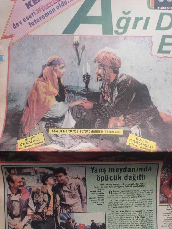 Hürriyet Kelebek Gazetesi - Turkish Newspaper - 10 Mayıs 1984 - Dev yazar Yaşar Kemal'in dev eseri Ağrı Dağı efsanesi Hürriyet için fotoroman oldu - Yaşar Kemal'in ilk aşk romanı Ağrı Dağı efsanesi - Ağrı Dağı efsanesinde Gülbahar Sultanı Serpil Çakmaklı Çoban Ahmet'i Burçin Oraloğlu oynuyor fotoğraf - hafif müzik sanatçısı Ayla Algan 12. Hitit rallisi öncesi tüm yarışçıları öpücük yağmuruna tuttu Fotoğrafı - Yaşar Özel ve eşi Aytaç Özel geçtiğimiz hafta içinde kızları Gülnur'un 5. Yaşını kutladılar Fotoğrafı - Aziz Nesin'in mizah Anıtı Tatlı Betüş oynayanlar Ayten Gökçer Yusuf Sezgin ve Murat Soydan yönetmen Zeki Alasya Foto Roman - televizyon programı - İstanbul'da sinema tiyatro programı - Kerime Nadir'in Hürriyet için yazdığı son roman geciken müjde Yazı Dizisi - Şener Şen İlk başrolünü oynuyor fotoğraf - sosyal içerikli bir Amerikan filmi Brubaker - beyaz şemsiyeli oynayanlar Türkan Şoray Cihan Ünal Dinçer Çekmez Foto Roman - işte fotoroman Müjdat Gezen Perran Kutman - Aziz Nesin, Aydın Doğan tarafından kaleme alınmıştır. Hürriyet Kelebek Gazetesi - Turkish Newspaper - 10 Mayıs 1984 - Dev yazar Yaşar Kemal'in dev eseri Ağrı Dağı efsanesi Hürriyet için fotoroman oldu - Yaşar Kemal'in ilk aşk romanı Ağrı Dağı efsanesi - Ağrı Dağı efsanesinde Gülbahar Sultanı Serpil Çakmaklı Çoban Ahmet'i Burçin Oraloğlu oynuyor fotoğraf - hafif müzik sanatçısı Ayla Algan 12. Hitit rallisi öncesi tüm yarışçıları öpücük yağmuruna tuttu Fotoğrafı - Yaşar Özel ve eşi Aytaç Özel geçtiğimiz hafta içinde kızları Gülnur'un 5. Yaşını kutladılar Fotoğrafı - Aziz Nesin'in mizah Anıtı Tatlı Betüş oynayanlar Ayten Gökçer Yusuf Sezgin ve Murat Soydan yönetmen Zeki Alasya Foto Roman - televizyon programı - İstanbul'da sinema tiyatro programı - Kerime Nadir'in Hürriyet için yazdığı son roman geciken müjde Yazı Dizisi - Şener Şen İlk başrolünü oynuyor fotoğraf - sosyal içerikli bir Amerikan filmi Brubaker - beyaz şemsiyeli oynayanlar Türkan Şoray Cihan Ünal Dinçer Çekmez Foto Roman - işte fotoroman Müjdat Gezen Perran Kutman - Aziz Nesin adlı eser Türkçe dilindedir.