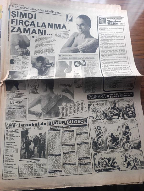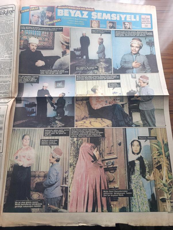 Hürriyet Kelebek Gazetesi - Turkish Newspaper - 10 Mayıs 1984 - Dev yazar Yaşar Kemal'in dev eseri Ağrı Dağı efsanesi Hürriyet için fotoroman oldu - Yaşar Kemal'in ilk aşk romanı Ağrı Dağı efsanesi - Ağrı Dağı efsanesinde Gülbahar Sultanı Serpil Çakmaklı Çoban Ahmet'i Burçin Oraloğlu oynuyor fotoğraf - hafif müzik sanatçısı Ayla Algan 12. Hitit rallisi öncesi tüm yarışçıları öpücük yağmuruna tuttu Fotoğrafı - Yaşar Özel ve eşi Aytaç Özel geçtiğimiz hafta içinde kızları Gülnur'un 5. Yaşını kutladılar Fotoğrafı - Aziz Nesin'in mizah Anıtı Tatlı Betüş oynayanlar Ayten Gökçer Yusuf Sezgin ve Murat Soydan yönetmen Zeki Alasya Foto Roman - televizyon programı - İstanbul'da sinema tiyatro programı - Kerime Nadir'in Hürriyet için yazdığı son roman geciken müjde Yazı Dizisi - Şener Şen İlk başrolünü oynuyor fotoğraf - sosyal içerikli bir Amerikan filmi Brubaker - beyaz şemsiyeli oynayanlar Türkan Şoray Cihan Ünal Dinçer Çekmez Foto Roman - işte fotoroman Müjdat Gezen Perran Kutman - Aziz Nesin adlı eser, Kitap > Süreli Yayınlar > Gazeteler > Türkiye > Genel > Günlük kategorisinde İkinci El olarak satıştadır.