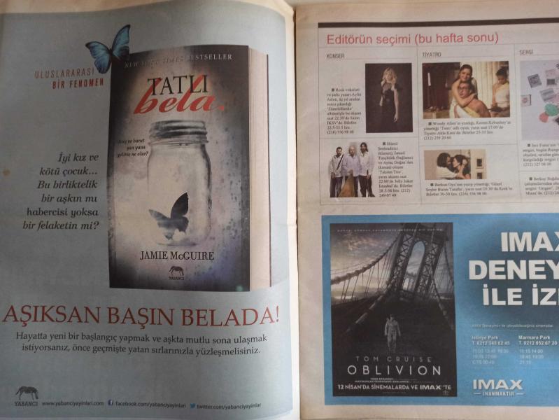 Hürriyet Keyif Magazin Dergisi - 13 Nisan 2013 - Tom Cruise Dünyayı Kurtarmaya Devam Ediyor - Editörün Seçimi - Görsellik Etkileyici Ama Senaryo Sıradan - Bu Ekip Tamamen Çıldırmış - Karlar Kraliçesi filmi - Teksas Katliamı 3D Filmi - Tasarımı Siz Yapın Onlar Uygulasın - Kendi Uzayını Yaratan Bir Musiki Bilgesi - 6 Asırda Birikti 50 Senede Yozlaştırıldı - Hat Sanatı Ayasofya'da Saltanat Kurdu - Boşlukta Süzülür Gibi Yaşayanların Dansı - Çok Fazla Ümit Pompalanıyor - Şov Dünyasının Atinalı Yıldızı - Benim Müziğim Özgür - Tarlabaşı'nın İz'li Tarihi - Candan Erçetin - Sinan Erkoç - Hasan Yıldırım - Muazzez Ersoy - Aşk Sanatı Filmi - Faruk Cimok - Anadolu Ateşi Filmi - Asi Kuş Filmi - Odada Dört Mevsim Filmi - Toplu Hikayeler Filmi - Geçit Yok Filmi - Arnold Schwarzenegger - Johnny Knoxville fotoğraf ve haberi - Tam Takım Dergi Yıpranma, sararmalar ve yırtılmalar zamana bağlı olarak görülebilir.