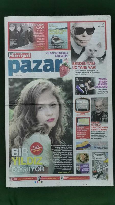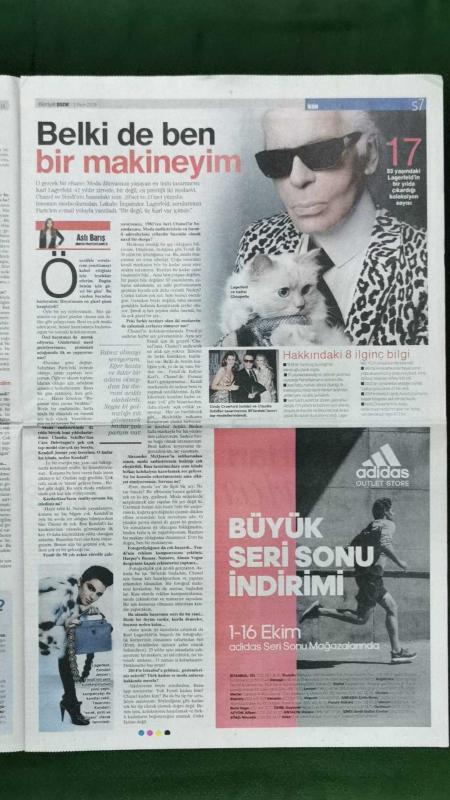 Kitap 2016 yılında yayınlanmıştır. 16 sayfadır. Hürriyet Pazar Gazete 2 Ekim 2016 Karl Lagerfeld,Hüseyin Emir Erkilet,Seren Serengil,Ecem Uzun,Tamer Karadağlı,Sahrap Soysal,Elçin Sangu,Şevval Sam,Çağatay Ulusoy,Seren Serengil,Serdar Bilgili,İstikbal - Adidas Reklamı adlı eser Türkçe dilindedir.