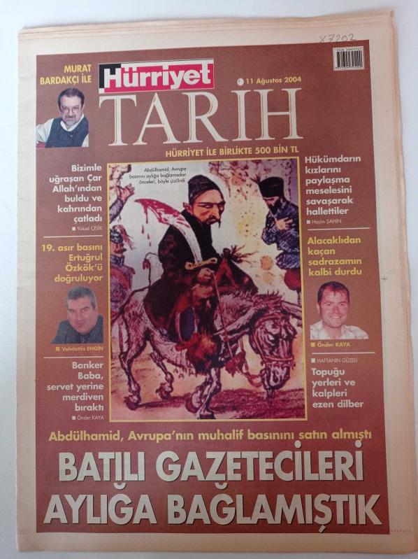 Hürriyet Tarih Gazetesi - 11 Ağustos 2004 - Batılı Gazetecileri Aylığa Bağlamıştık - Banker Baba Servet Yerine Merdiven Bıraktı - 19. Asır Basını Ertuğrul Özkök'ü Doğruluyor - Alacaklıdan Kaçan Sadrazamın Kalbi Durdu adlı eser Türkçe dilindedir.