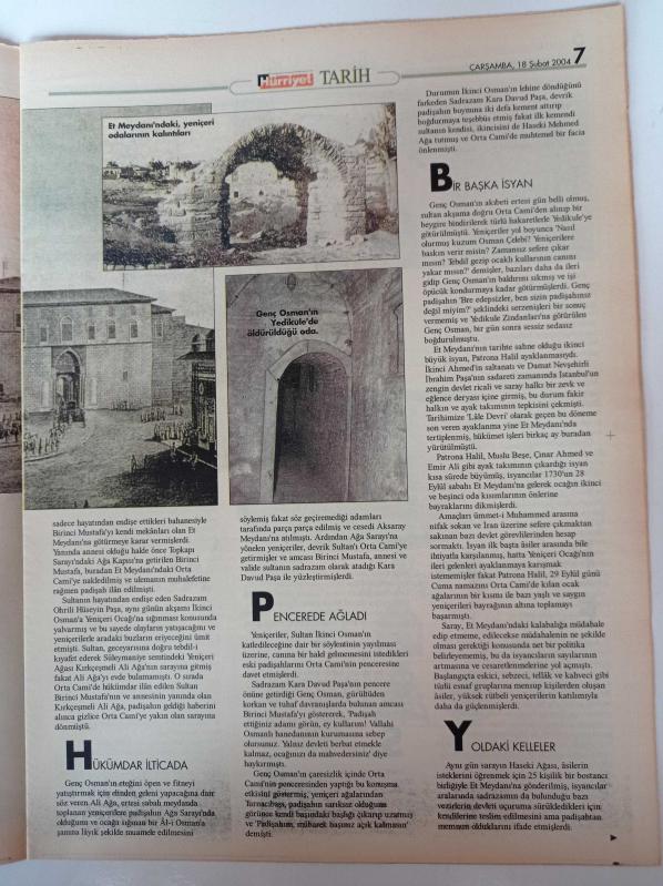 Hürriyet Tarih Gazetesi - 18 Şubat 2004 - Çalan Müteahhide Hammurabi Modeli - Yeniçeri Ocağı'nı Devrilen Kazan Söndürdü - Erkek Adam Diye Düelloda Ölene Derler adlı eser Türkçe dilindedir.