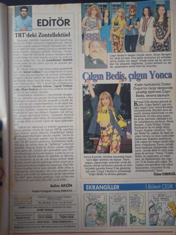 Kitap 1996 yılında yayınlanmıştır. 30 sayfadır. Hürriyet Teleskop Dergisi- 8-14 Haziran 1996- Defne Samyeli- Çılgın Bediş- Yonca Evcimik- Nejat Uygur- Jülide Ateş- Birgül Köseoğlu- Okan Bayülgen- Dean Martin- Özden Övgün adlı eser Türkçe dilindedir.