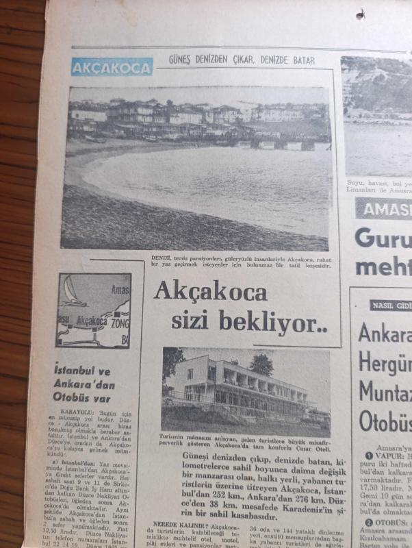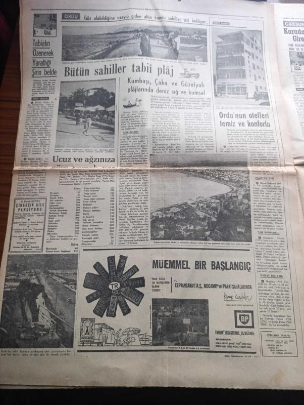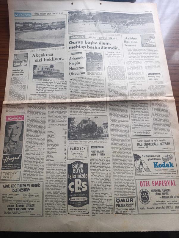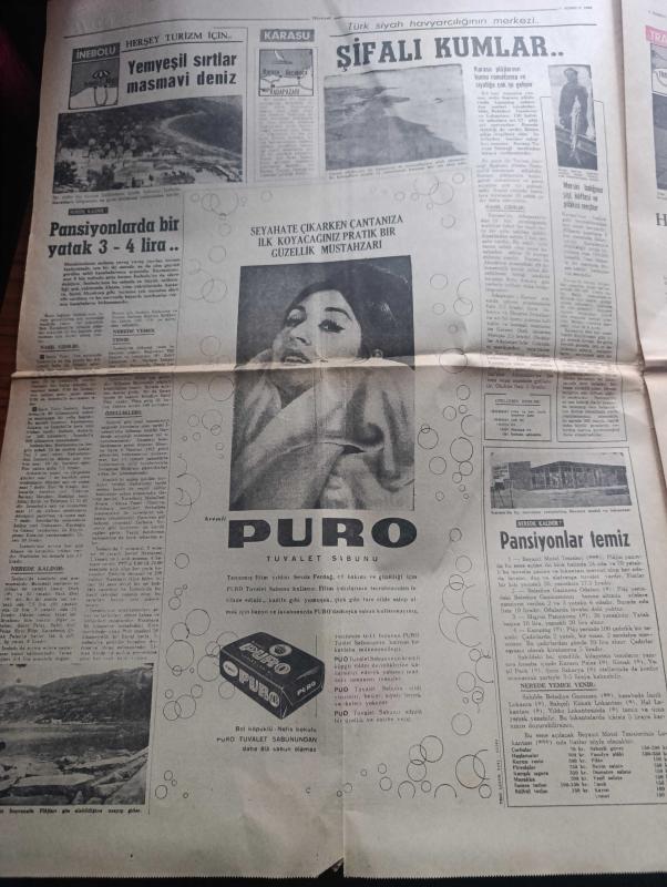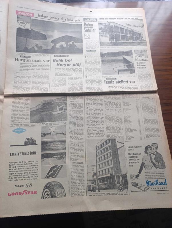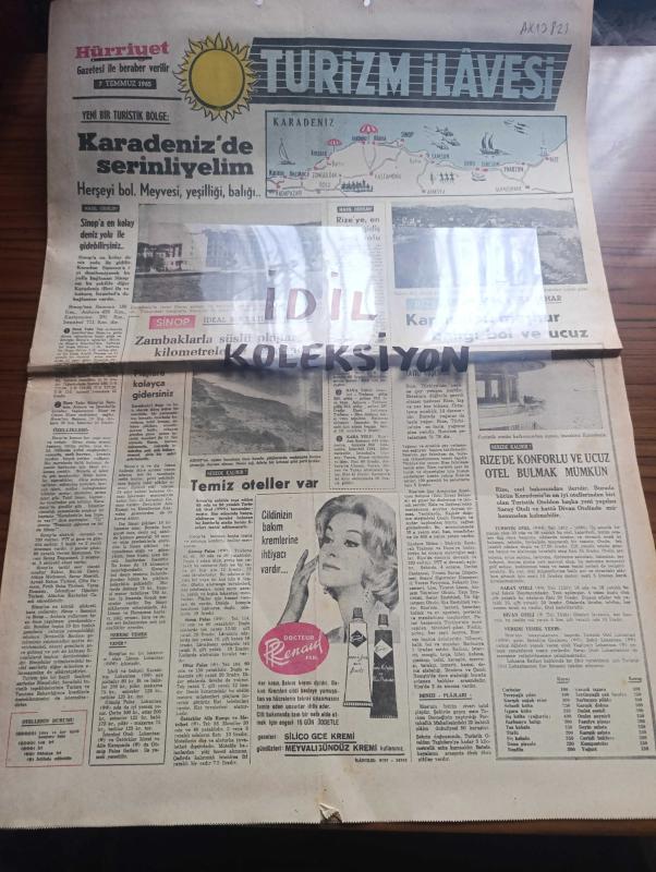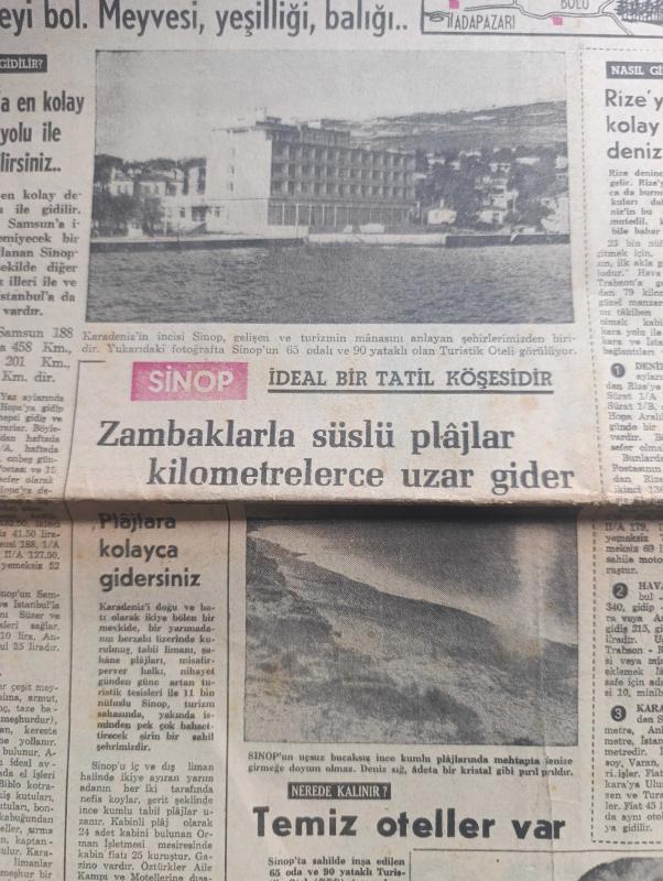 Hürriyet Turizm Gazetesi - Turkish Newspaper - 7 Temmuz 1965 - yeni bir turistik bölge Karadeniz'de serinleyelim harita - Sinop ideal bir tatil köşesidir Fotoğrafı - Rize Kış ortasında bile Bahar kaplıcaları meşhur balığı bol ve ucuz fotoğraf - Film Yıldızı Sevda Ferdağ Puro tuvalet sabunu kullanıyor - Türk siyah havyarcılığının merkezi Karasu Fotoğrafı - yemyeşil sırtlar masmavi deniz İnebolu Fotoğrafı - Mersin balığının şişi köftesi ve pilakisi meşhur - Trabzon denince akla balık gelir Fotoğrafı - sualtı avcılığı - Samsun'da bütün sahiller plaj meşhur matosyan plajı Fotoğrafı - Ordu'nun kumbaşı Çaka ve Güzelyalı plajlarında Deniz sığ ve Kumsal Fotoğrafı - Ordu'nun en iyi lokantası turist otel lokantasıdır - yeşillikler ülkesi Giresun Fotoğrafı - Abana bir cennettir Fotoğrafı - Amasra'ya Allah her şeyi vermiş Fotoğrafı - Akçakoca'da Güneş denizden çıkar denizde batar Fotoğrafı - Amasrada sualtı avcılığı yazan Çeler Alabay - ÇBS boya - Kamil Koç Turizm - yeni Londra asfaltında Ömür adlı eser, Kitap > Süreli Yayınlar > Gazeteler > Türkiye > Genel > Günlük kategorisinde İkinci El olarak satıştadır.