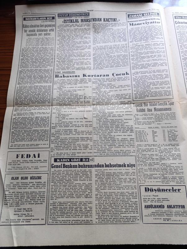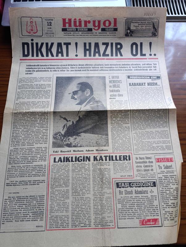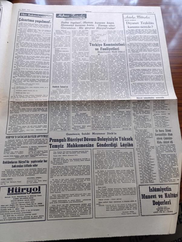 Hüryol Gazetesi - 12 Ekim 1964 - Dikkat Hazır Ol Köşe Yazısı Hüryol Köşe Yazısı - Eski Başvekil Merhum Adnan Menderes Fotoğraf - Celal Bayar Adnan Menderes Ve Mithat Dülge Hakkında Açılan Dava - Kabahat Bizim Yazanlar Muammer Dirik Köşe Yazısı - Bir Nurcu İmran Öktem'i Komünistlikle İtham Ederek Çumralı'yı Allah'a Şikayet Etti - Laikliğin Katilleri Yazan Sinan Omur Köşe Yazısı - İstiklal Marşı'ndan Kaçtık - Dini Bağışlar Babasını Kurtaran Çocuk - Komünizm Karşısında En Büyük Silah Maneviyattır Yazan Mehmet Akşit Köşe Yazısı - Kabus Olmaktan İleri Geçemiyen Bir Azınlık İktidarının Artık Başımızda Yeri Yoktur - Kadın Gözü İle Yazan Nazife Tezel - Gazetemiz Sahibi Muammer Dirik'in Prangalı Hürriyet Davası Dolayısıyla Yüksek Temyiz Mahkemesine Gönderdiği Layiha - Haftanın Fantezileri Yazan İçimizden Biri - Türkiye Komünistleri Ve Faaliyetleri Hazırlayan Halil Dikici - Diyanet Teşkilatı Kanunu Nerede Yazan Haluk Durmaz - Satılmış Gafiller Kahrolsun İşte Komünizm Bir Bulgar Casusu açıkladı adlı eser, Kitap > Süreli Yayınlar > Gazeteler > Türkiye > Genel > Günlük kategorisinde İkinci El olarak satıştadır.