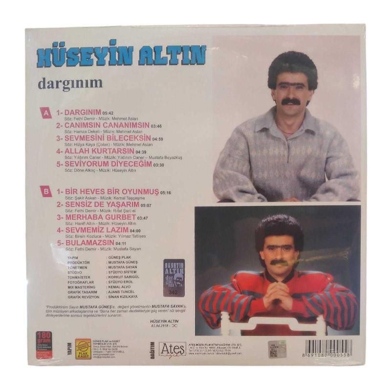 Hüseyin Altın - Dargınım Güneş Plak Lp Numaralı Baskı : 0342 Bandrollü ve Orjinal Kapalı Ambalajında Kullanılmamış Yeni Basım Üründür Yayınlanma Tarihi : 7 Şubat 2022 LP-1-A 1. Dargınım 2. Canımsın Cananımsın 3. Sevmesini Bileceksin 4. Allah Kurtarsın 5. Seviyorum Diyeceğim LP-1-B 1. Bir Heves Bir Oyunmuş 2. Sensiz De Yaşarım 3. Merhaba Gurbet 4. Sevmemiz Lazım 5. Bulamazsın