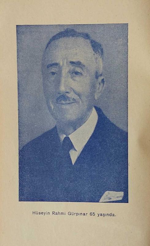 Bu kitap ne ilmi bir etüddür, ne de usulüne göre yapılmış bir edebi tenkidi ihtiva ediyor. Ben bu kitabı vaktile ona ait hatıralarımı toplamak ve duyguları belirtmek için yazmıştım; şimdi hiç bir yerine dokunmadan, ifadesini bile değiştirmeden bastırıyorum. Bu kitabın maksadı sadece onu hatırlamaktır ve Hüseyin Rahmi Gürpınar, Türk edebiyatının devamlı, uzun ve sonsuz ömrü boyunca her zaman hatırlanmaya layık bir sanatkardır." Metin içinde ayrıca fotoğraflar. Orijinal karton kapağında. (İlk sayfada kaşe silintisi.)