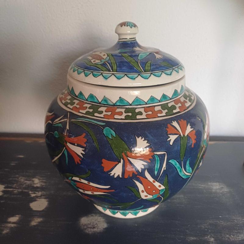 Huzur Çini Seramik Küp,Kapakli,El boyama,Kusursuz başlıklı ürün, Antika-Koleksiyon, Hobi-Sanat > Seramik, Cam, Porselen Objeler > Vazo kategorisinde İkinci El olarak satışa sunulmuştur.