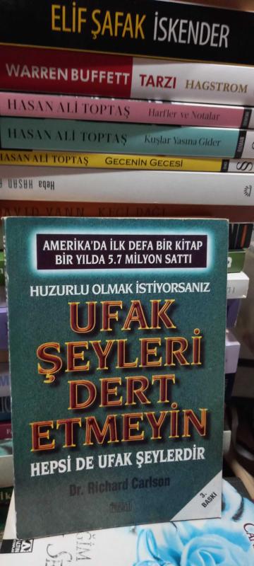 Huzurlu Olmak İstiyorsanız Ufak Şeyleri Dert Etmeyin - Hepsi de Ufak Şeylerdir, Richard Carlson tarafından kaleme alınmıştır. Kitap 1999 yılında Alkım Yayınevi tarafından [İstanbul] yayınlanmıştır. 223 sayfadır. Huzurlu Olmak İstiyorsanız Ufak Şeyleri Dert Etmeyin - Hepsi de Ufak Şeylerdir adlı eser Türkçe dilindedir.