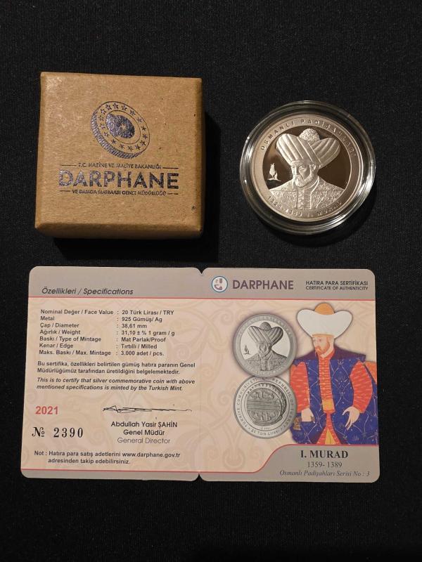 I. Murad (Gümüş) / Osmanlı Padişahları Serisi No: 3 – SERTİFİKALI başlıklı ürün, Efemera, Müzik, Sinema > Nümismatik, Para, Madalya > Hatıra Paraları > Hatıra Parası kategorisi altında İkinci El olarak satılmaktadır.