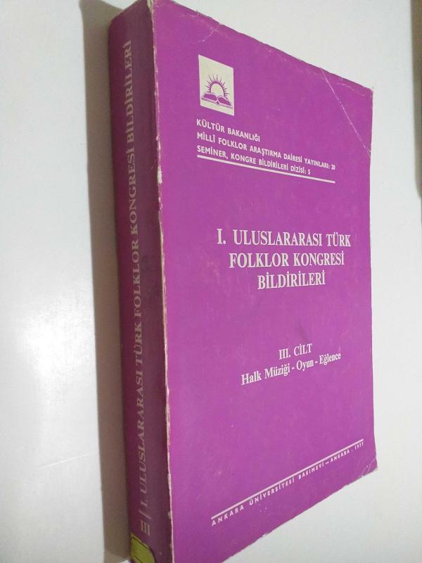 Kitap 1977 yılında Kültür Bakanlığı tarafından [Ankara] yayınlanmıştır. 433 sayfadır. I. Uluslararası Türk Folklor Kongresi Bildirileri / III. Cilt Halk Müziği, Oyun, Eğlence adlı eser Türkçe dilindedir.