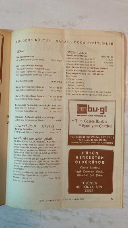 İÇEL SANAT KULÜBÜ AYLIK BÜLTENİ DERGİSİ - ARALIK 1993 SAYI: 20 FAZIL TÜTÜNER - MURAT GÖKSU - ANTONIO PIROLLI - SERRA DURUGÖNÜL - DOĞAN AKÇA - M. ALİ MERİÇ - NİSA KADİBEŞEGİL - HAMİDE AKATA - MÜBERRA ANAMUR - ÖMER ANAMUR - M. ALİ SULUTAŞ MERSİN DEVLET OPERA VE BALESİ'NDE LA BOHEME - KİLİKYA'DA BİR ATHENA PARTHENOS - BÖLGEDE KÜLTÜR SANAT VE DOĞA ETKİNLİKLERİ - SERGİLER - OPERA BALE PROGRAMI - DOĞAN AKÇA RESİM ATÖLYESİ - HOLLANDA GEZİSİ DİA GÖSTERİSİ - KUYULUK GEZİSİ - TÜTÜNSÜZ BİR DÜNYA İÇİN ELELE - BİR GARİP YAĞMUR DUASI - ÖĞRETMEN - ZEHRA SAY - MERSİN DEVLET OPERA VE BALESİ - KENTLERİMİZE ÖNCE MİMARLAR SAHİP ÇIKMALI - AYIN PROGRAMI - HİKMET ŞİMŞEK İLE BİR GÜZEL GÜN - YAZDAN KALAN NOTLAR - AKKAHVE’NİN SANATÇILARI - MERSİN’DE EDEBİYATÇI VE EDEBİYATÇILAR - ÇAMLIBEL'DE BİR KONAK VARDI - 70. YIL GÖKKÜŞAĞI İÇEL SANAT KULÜBÜ - SEMİHİ VURAL - KİLİKYA'DA BİR ATHENA PARTHENOS - LEVENT ZOROĞLU - AYDINLAR ÜSTÜNE, HİKMET ERGUN - SAHİP ÇIKMANIN BÖYLESİ- REMZİYE ERYILMAZ - TAM TAKIM EKSİKSİZ 36 SAYFA adlı eser, Kitap > Süreli Yayınlar > Dergiler > Magazin, Moda kategorisinde İkinci El olarak satıştadır.