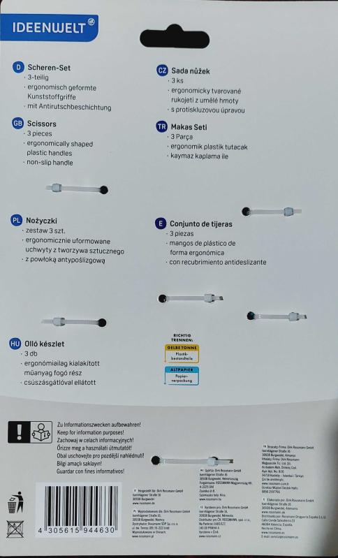 IDEENWELT 3'lü MAKAS SETİ ERGONOMİK PLASTİK TUTACAK SAYESİNDE ELDEN KAYMAZ 3 FARKLI BOYUT İLE ÖMÜRLÜK SET PAKETİ AÇILMAMIŞTIR.