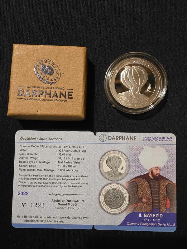 II.Bayezid (1481-1512) Osmanlı Padişahları Serisi No:8 Sertifikalıdır.