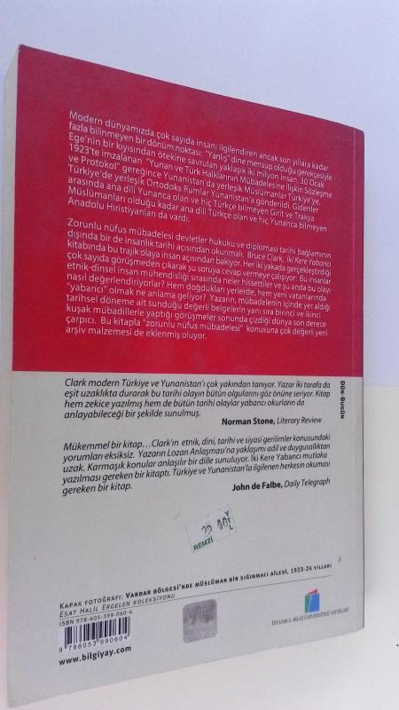 4 - 5 SAYFADA KURŞUNKALEMLE İŞARETLEME YAPILMIŞ Modern dünyamızda çok sayıda insanı ilgilendiren ancak son yıllara kadar fazla bilinmeyen bir dönüm noktası: "Yanlış" dine mensup olduğu gerekçesiyle Ege'nin bir kıyısından ötekine savrulan yaklaşık iki milyon insan. 30 Ocak 1923'te imzalanan "Yunan ve Türk Halklarının Mübadelesine İlişkin Sözleşme ve Protokol" gereğince Yunanistan'da yerleşik Müslümanlar Türkiye'ye, Türkiye'de yerleşik Ortodoks Rumlar Yunanistan'a gönderildi. Gidenler arasında ana dili Yunanca olan ve hiç Türkçe bilmeyen Girit ve Trakya Müslümanları olduğu kadar ana dili Türkçe olan ve hiç Yunanca bilmeyen Anadolu Hıristiyanları da vardı. Zorunlu nüfus mübadelesi devletler hukuku ve diplomasi tarihi bağlamının dışında bir de insanlık tarihi açısından okunmalı. Bruce Clark, İki Kere Yabancı kitabında bu trajik olaya insan açısından bakıyor. Her iki yakada gerçekleştirdiği çok sayıda görüşmeden çıkarak şu soruya cevap vermeye çalışıyor: Bu insanlar etnik-dinsel insan mühendisliği sırasında neler hissettiler ve şu anda bu olayı nasıl değerlendiriyorlar? Hem doğdukları yerlerde, hem yeni vatanlarında " yabancı" olmak ne anlama geliyor? Yazarın, mübadelenin içinde yer aldığı tarihsel döneme ait sunduğu değerli belgelerin yanı sıra birinci ve ikinci kuşak mübadillerle yaptığı görüşmeler sonunda çizdiği dünya son derece çarpıcı. Bu kitapla "zorunlu nüfus mübadelesi" konusuna çok değerli yeni arşiv malzemesi de eklenmiş oluyor. Clark modern Türkiye ve Yunanistan'ı çok yakından tanıyor. Yazar iki tarafa da eşit uzaklıkta durarak bu tarihi olayın bütün olgularını göz önüne seriyor. Kitap hem zekice yazılmış hem de bütün tarihi olaylar yabancı okurların da anlayabileceği bir şekilde sunulmuş. -Norman Stone, Literary Review- Mükemmel bir kitap... Clark'ın etnik, dini, tarihi ve siyasi gerilimler konusundaki yorumları eksiksiz. Yazarın Lozan Anlaşması'na yaklaşımı adil ve duygusallıktan uzak. Karmaşık konular anlaşılır bir dille sunuluyor. İki Kere Yabancı mutlaka yazılması gereken bir kitaptı. Türkiye ve Yunanistan'la ilgilenen herkesin okuması gereken bir kitap. -John de Falbe, Daily Telegraph-