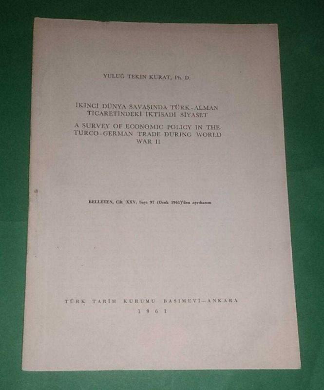 İKİNCİ DÜNYA SAVAŞINDA TÜRK - ALMAN TİCARETİNDEKİ İKTİSADİ SİYASET / BELLETEN, CİLT XXV, SAYI 97 (OCAK 1961)' DEN AYRIBASIM, YULUĞ TEKİN KURAT tarafından kaleme alınmıştır. Kitap 1961 yılında TÜRK TARİH KURUMU BASIMEVİ tarafından [ANKARA] yayınlanmıştır. Sayfa bilgisi 96-112 olarak belirtilmiştir. İKİNCİ DÜNYA SAVAŞINDA TÜRK - ALMAN TİCARETİNDEKİ İKTİSADİ SİYASET / BELLETEN, CİLT XXV, SAYI 97 (OCAK 1961)' DEN AYRIBASIM adlı eser Türkçe dilindedir.