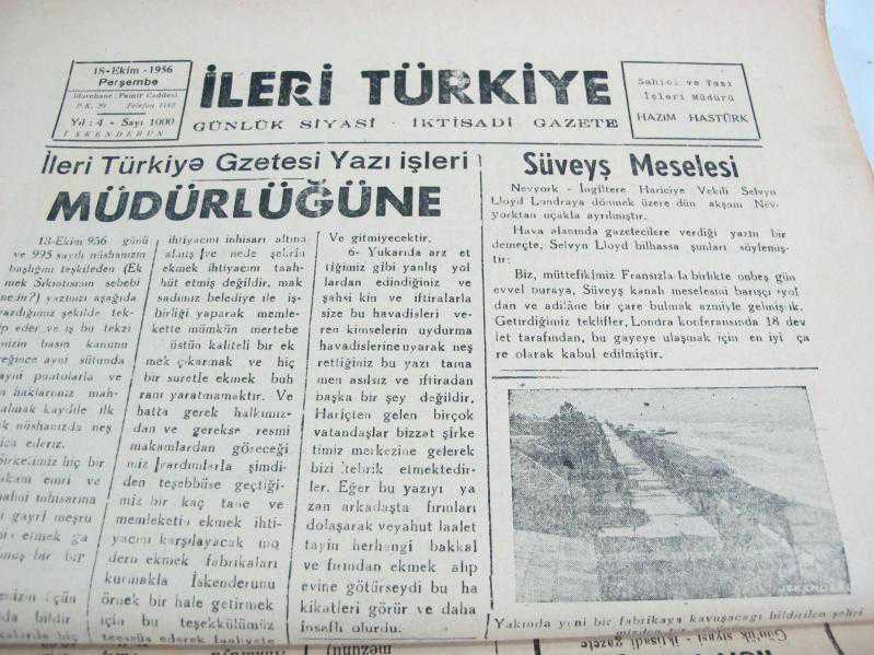 İLERİ TÜRKİYE İSKENDERUN HAZIM HASTÜRK 18 / 10 / 1956 SAYI 1000 SAYFA 2