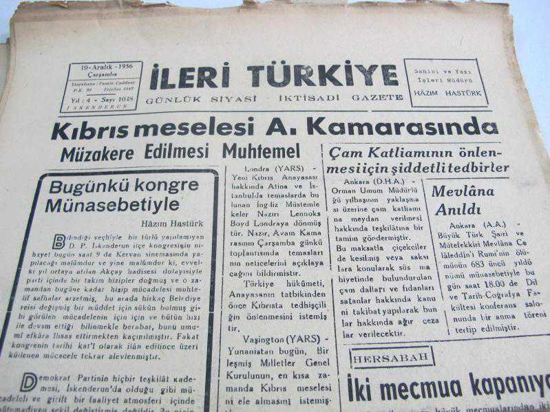 İLERİ TÜRKİYE İSKENDERUN HAZIM HASTÜRK 19/12/956, 7 yıl önce satışa sunulmuştur.