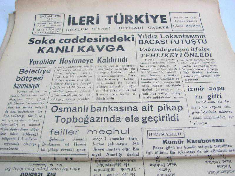 İLERİ TÜRKİYE İSKENDERUN HAZIM HASTÜRK 25/12/956, 7 yıl önce satışa sunulmuştur.