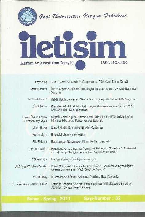 Kitap 2011 yılında GAZİ ÜNİVERSİTESİ İLETİŞİM FAKÜLTESİ tarafından [ANKARA] yayınlanmıştır. 220 sayfadır. İLETİŞİM KURAM VE ARAŞTIRMA DERGİSİ SAYI 32 BAHAR 2011 adlı eser Türkçe dilindedir.