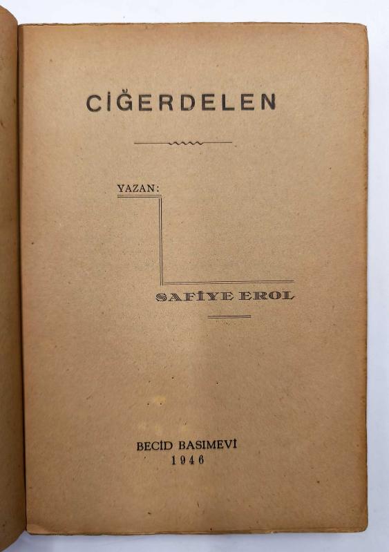 [İLK BASKI - KADIN YAZARLAR] Ciğerdelen. Kapak tasarımı: Er., SAFİYE EROL (1902-1964) tarafından kaleme alınmıştır. Kitap 1946 yılında Becid Basımevi tarafından [İstanbul] yayınlanmıştır. [İLK BASKI - KADIN YAZARLAR] Ciğerdelen. Kapak tasarımı: Er. adlı eser Türkçe dilindedir.