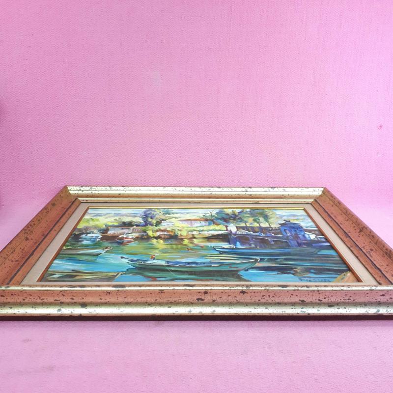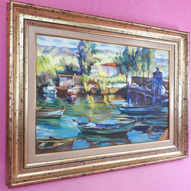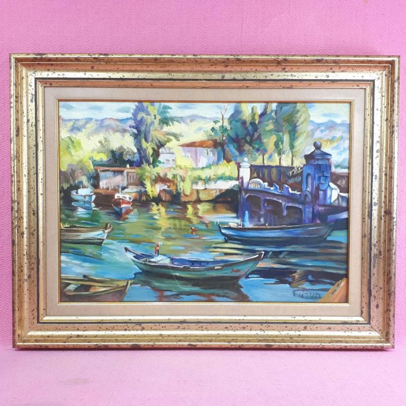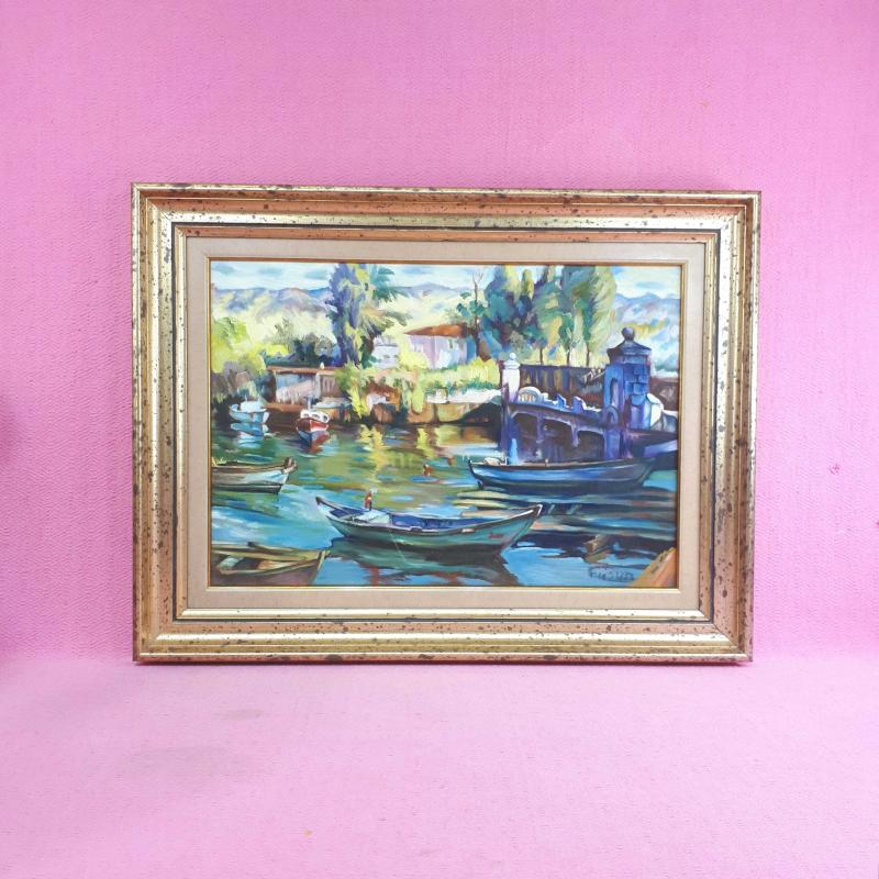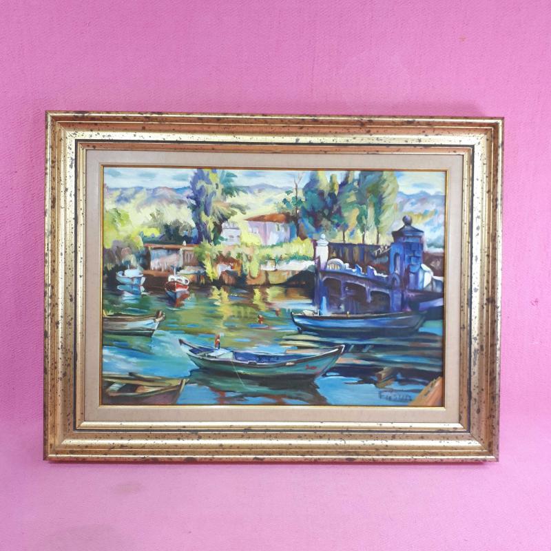 İMZALI ÇERÇEVELİ SAHİLDE TEKNELER TEMALI YAĞLIBOYA RESİM, en son dün güncellenmiştir.