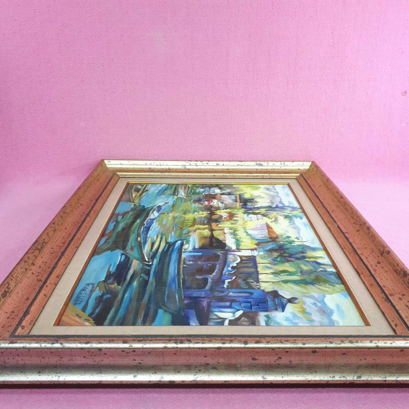 2000 LERDEN . 50 x 35 cm TUVAL ÜZERİNE YAĞLIBOYA , ESKİTME VARAK GÖRSELLİ VE PASPARTULU ÇERÇEVEYLE BERABER ÖLÇÜLERİ 64 x 49 cm . AYHAN TÜRKER İN BOĞAZİÇİ RESİMLERİ TARZINDA , FÜSUN İMZALI . KUSURSUZ .