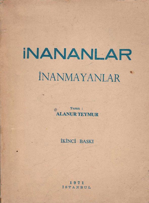 İNANANLAR İNANMAYANLAR, Alanur Teymur tarafından kaleme alınmıştır. Kitap 1971 yılında Fatih Yayınları tarafından [İSTANBUL] yayınlanmıştır. 128 sayfadır. İNANANLAR İNANMAYANLAR adlı eser Türkçe dilindedir.