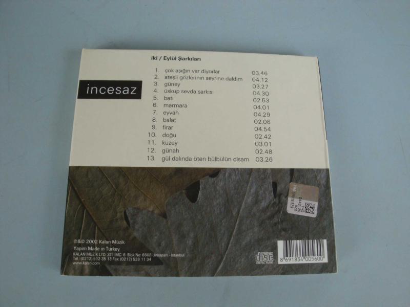 İNCESAZ - MELİHAT GÜLSES " İki / Eylül Şarkıları " CD KALAN MÜZİK 2. El ,, Disk ÇOK TEMİZ durumda ...